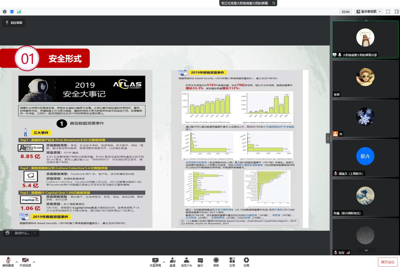 会上,熊老师介绍了国内外影响网络安全的DDoS攻击、数据泄露、安全事件的经典案例,分析了《上半年互联网移动安全报告》,针对通过社会工程学对移动设备的隐私泄露、电信诈骗等案件,特别是近期疫情期间的各种网络诈骗,提出必须培养安全意识和技术防范。
