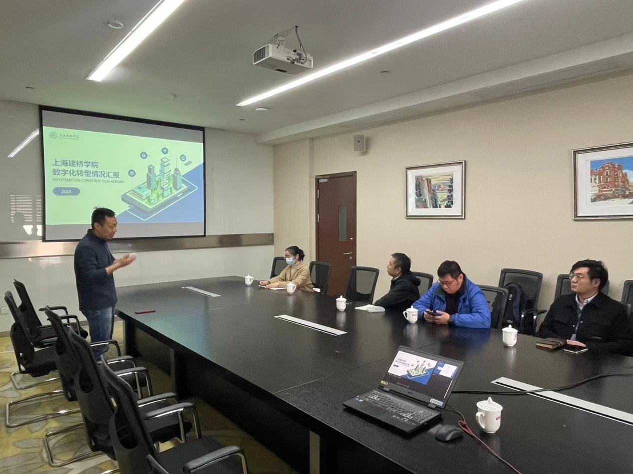 2023年3月9日我校信息中心主任邱洋、副主任计大威和许斌、赵静赴上海建桥学院进行调研交流,上海建桥学院信息中心主任沈方园热情接待并主持召开了会谈交流。