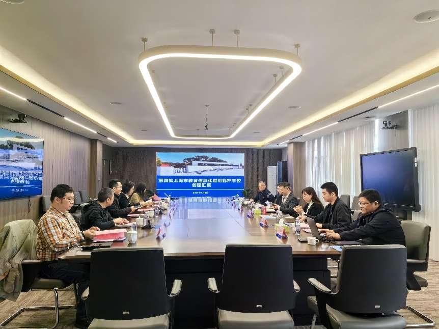 随后,上海电子信息职业技术学院党委副书记、院长赵坚在会议室进行了标杆学校申报陈述。他详细介绍了学校在教育信息化方面的创新举措和取得的成效,展现了学校在教育信息化应用领域的领先地位。