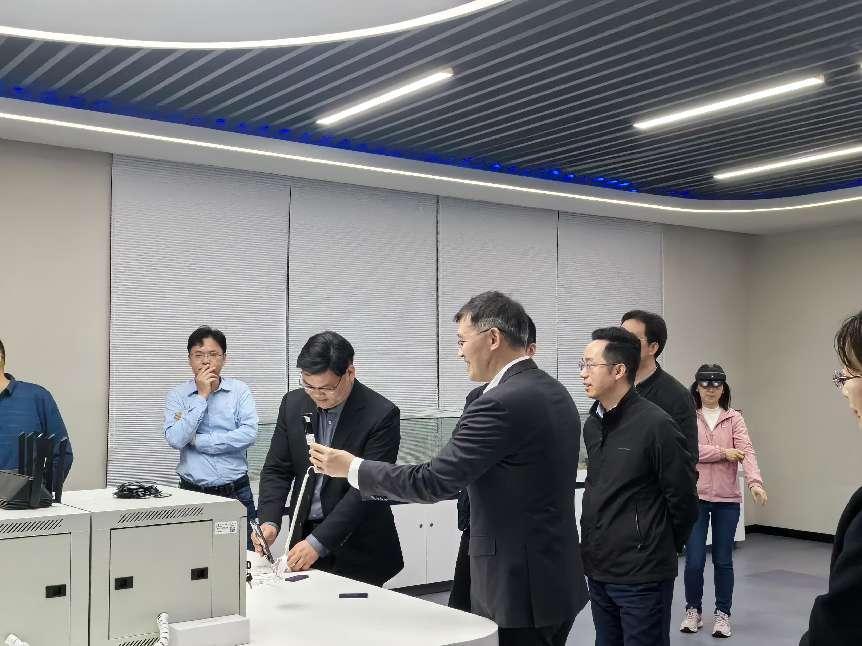 紧接着,评审组成员在学校领导的陪同下,前往教学楼J楼和I楼,现场参观了通信与信息工程学院的国家5G移动通信虚拟仿真实训基地和申安网络安全产业学院的数字化课程转化中心。这些先进的设施和资源为学校的教育信息化应用提供了有力支撑,也为学生提供了更加丰富的实践机会。